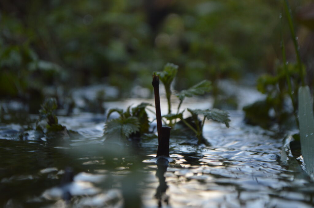 Lorsque l’eau arrive enfin à recouvrir quelques milimètres de chacun de ses appuis, le caillou referme chacune de ses fissures brûlantes, méthodiquement depuis les pieds jusqu’au dessus de sa surface plane. L’eau le parcourt et l’apaise, son aura démoniaque se dissipant doucement.